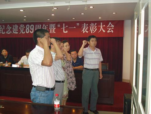新党员在表彰大会上进行入党宣誓