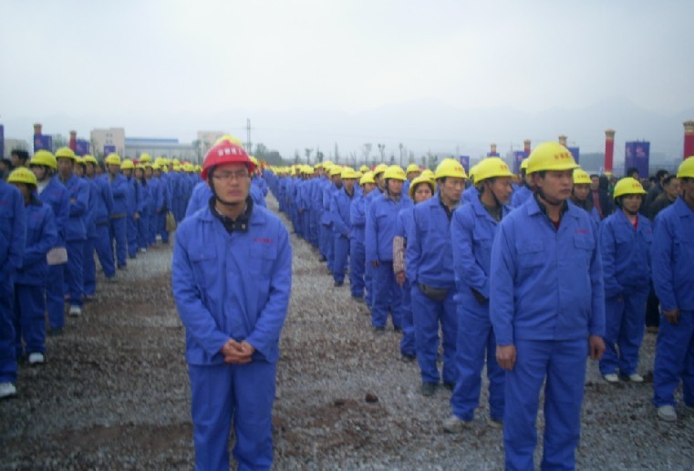 图为参加开工仪式的安徽建工施工队伍