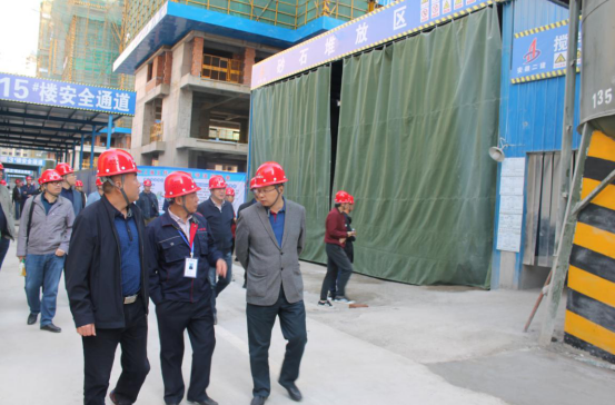 项目党支部书记、生产经理郑章乐从项目概况、党建工作的开展、安全文明施工、质量管控和进度等方面向观摩人员介绍。观摩团一行参观了安全教育培训体验区、建设高层内部区、砂石堆放区、雨水系统收集图。