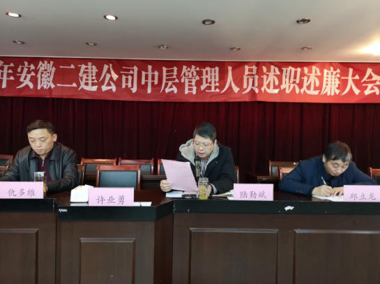 为认真总结2019年度公司各部门和分公司的主要工作,进一步强化中层管理人员的责任意识,提高各部门和分公司工作能力,打造一支高素质的管理团队,2020年1月6日,公司召开2019年度中层管理人员述职述廉大会。公司总经理陆勤斌及领导班子成员、中层副职以上人员与会。大会由党委副书记、纪委书记仇多维主持。