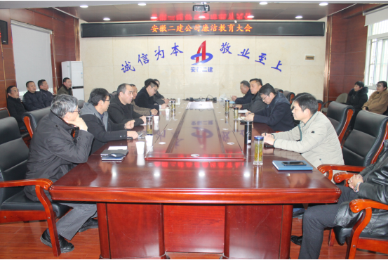 1月14日,安徽二建公司召开廉洁教育大会,公司领导班子成员以及中层管理人员参加会议,党委副书记、纪委书记仇多维主持会议。