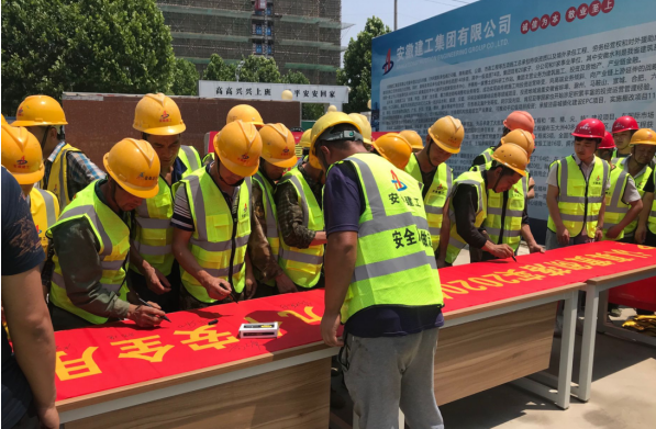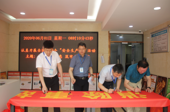 61日上午安徽二建公司举行了“安全生产月”启动仪式,公司领导、机关全体职工100余人参加。总经理陆勤斌作了讲话,指出安全生产工作的重要性和“安全生产月”活动的意义,宣布2020年“安全生产月”活动正式启动。全体职工在安全总监曹建的带领下进行了安全宣誓,随后,大家在印有安全生产月主题消除事故隐患,筑牢安全防线”的横幅上签名。公司所属各单位、各项目部同步开展了启动仪式。