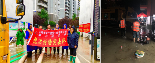 为积极响应瑶海区政府和公司抗洪抢险号召,7月18日二分公司第一时间成立两支抗洪抢险突击队,准备雨衣、雨鞋、铁锹、水泵、配电箱、电缆等物资20分钟极速赶到抗洪前线,代表公司参加瑶海区住建局统一调度抗洪抢险工作,救灾现场有的架设水泵、有的铺设电缆、有的配合抽水排涝,分工明确、争分夺秒,力争将群众的损失降到最低。