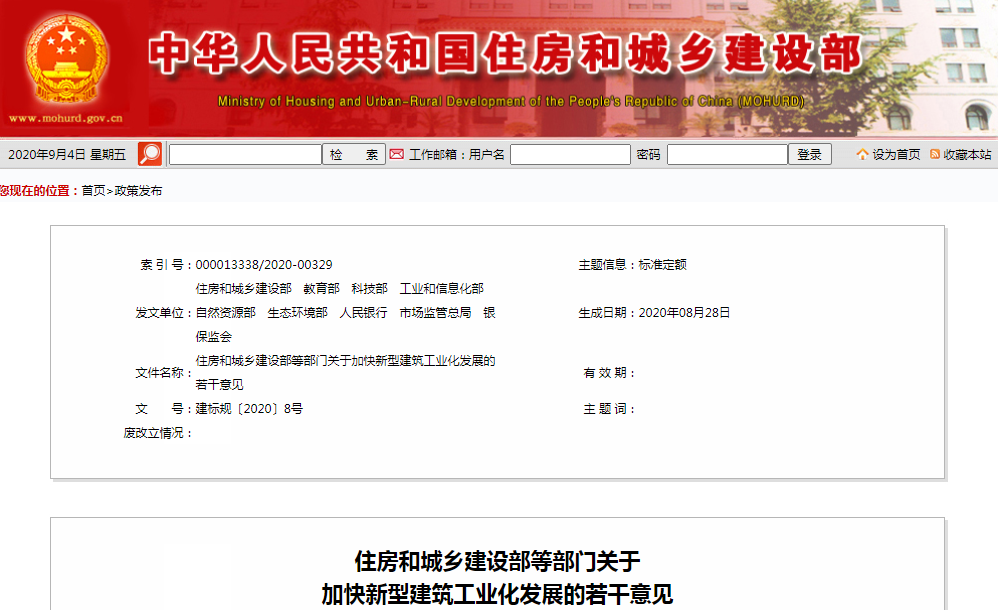 近日,住房和城乡建设部、教育部、科技部、工业和信息化部、自然资源部、生态环境部、人民银行、市场监管总局、银保监会9部门联合印发意见,提出要加快新型建筑工业化发展,以新型建筑工业化带动建筑业全面转型升级,打造具有国际竞争力的“中国建造”品牌,推动城乡建设绿色发展和高质量发展。