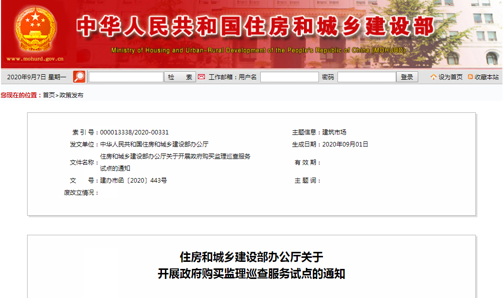 住房和城乡建设部开展政府购买监理巡查服务试点