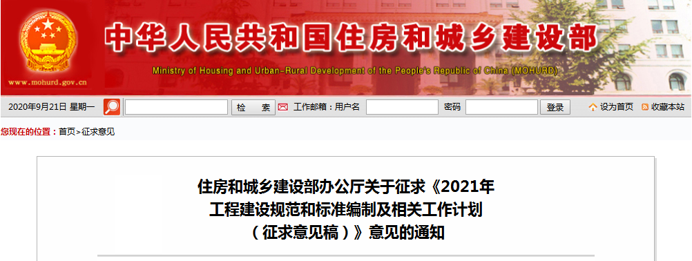 为满足工程建设需要,落实工程建设标准体制改革要求,完善工程建设规范体系,住房和城乡建设部会同有关部门和行业标准化管理机构,研究提出了《2021年工程建设规范和标准编制及相关工作计划(征求意见稿)》。现向社会公开征求意见。