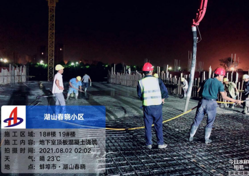 蚌埠地区因受台风影响,连续的暴雨天气对施工造成很大影响,项目部立即组织抢险小组,对基坑、地下室等部位加强排水和安全检查,保障施工进度不受影响。暴雨过后,蚌埠迎来了炎热的高温天气,项目部调整作息时间,认真落实防暑降温各项保障工作,利用早晚时间段进行抢工,使项目的大干氛围不因特殊天气有丝毫懈怠。项目部严格按照施工进度计划组织生产,在抓好安全管控、质量管理、疫情防控的前提下,抓住当前有利天气,抢抓施工黄金期,合理安排人材机的投入,推动各道工序穿插进行,不断推进施工进度,不断提高整体施工效率,以施工进度为主线,以争创产值为目标,积极调动项目管理人员及分包队伍的积极性,全体员工以高度的责任感和积极向上的精神风貌,全面掀起了劳动竞赛大干热潮,施工现场呈现一片热火朝天的繁忙景象。