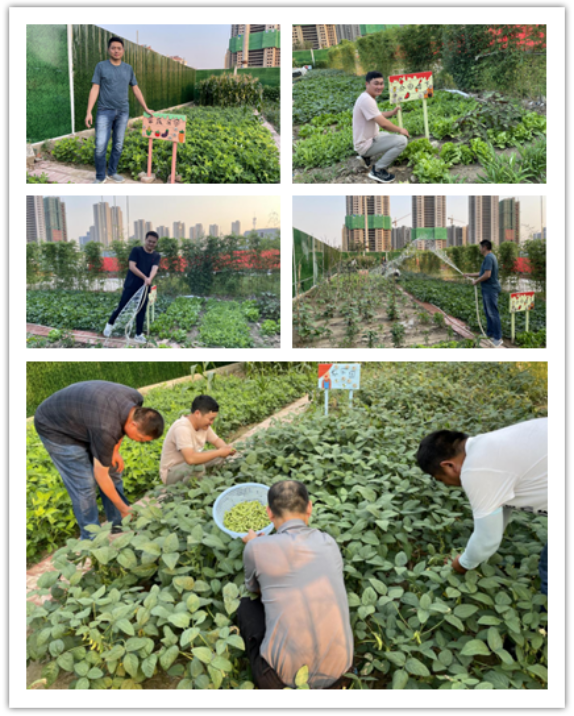在项目党员的带领下,大家踊跃为“小菜园”的建设付出了自己的微薄之力,项目部收获了品类繁多的绿色蔬菜。在劳动中大家体会到了粮食的可贵,更加懂得要尊重劳动人民。