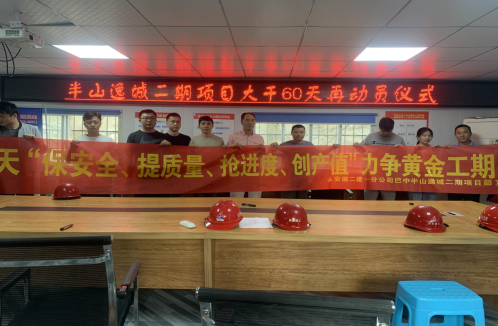 巴中半山逸城二期项目为实现分公司半年度“时间过半、任务过半”的目标,有效抢抓5至6月施工黄金期。自2021年4月26日至6月25日开展以“保安全、提质量、抢进度、创产值”为主题的“大干60天”劳动竞赛。