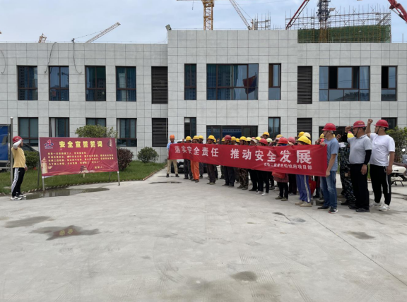 6月1日上午,淮北国金铂悦府项目联合各班组开展2021年“安全生产月”活动启动仪式,并进行安全宣誓。