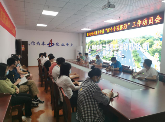 会上传达学习了集团及公司“违规决策、违规投资、违规担保、违规招投标”专项整治工作方案。制定了分公司“四个专项整治”工作方案,成立了分公司“四个专项整治”工作领导小组,并对集中开展“四个专项整治”工作进行了动员部署。
