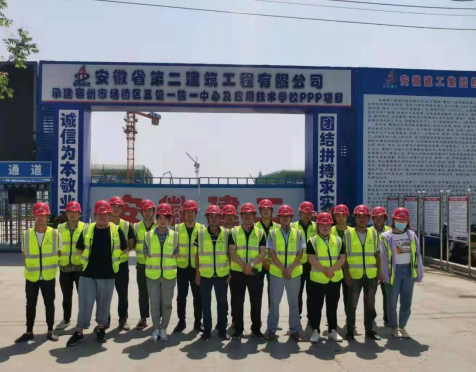 自一分公司承建宿州应用技术学校项目以来,在公司及分公司领导的大力支持下,整个项目面貌焕然一新。拔地而起的塔吊,进进出出的车辆,上下不停的施工电梯、繁忙有序的流水作业面无不展现着项目的“新生”。学校项目从前那副荒草丛生、死气沉沉的景象早已消散在当地人的记忆中,安徽二建用自己的活力与速度一举消除了原中标单位长期停工所带来的不良社会影响。