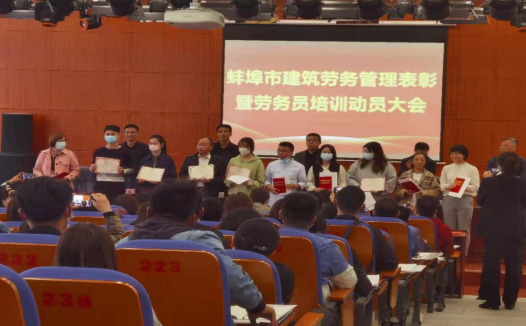 近日,蚌埠市住建局在蚌埠建设学校组织召开蚌埠市建筑劳务管理表彰暨劳务员培训动员大会,全市房建和市政在建项目施工单位负责人及劳务员三百余人参会。市住建局党委委员、副局长徐文伯出席会议并讲话,市住建局建筑市场科、市建管处和建设学校负责人参加会议。