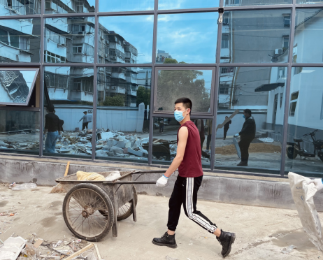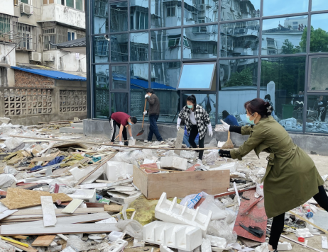 4月20日下午,方圆劳务组织职工清理公司会议室、食堂项目建筑垃圾。