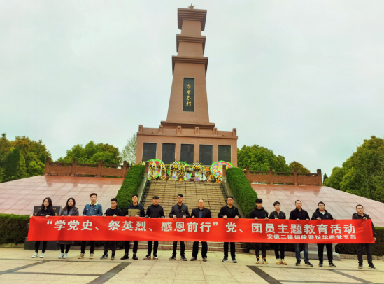 4月2日,三分公司铜陵吾悦华府项目党支部开展“学党史、祭英烈、感恩前行”主题活动。