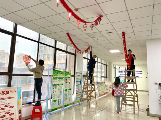 辞旧迎新,迎春接福,大扫除是迎新年重要的环节。青年团员们分工劳作,有人拿起扫帚、抹布打扫办公区域、卫生死角,有人张贴窗花、迎春装饰,经过辛勤劳动,大家将办公用品摆放整齐,桌面保持清洁干净,使得办公环境更加整洁明亮,红彤彤的窗花和新年快乐装饰为大家营造了更加舒适的节日环境。