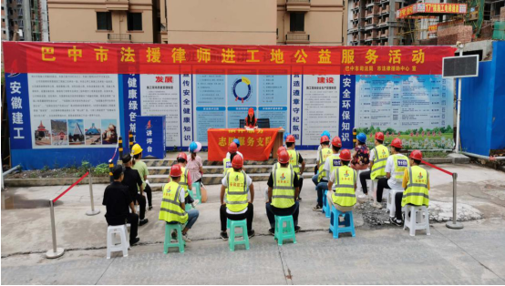 8月7日下午,四川巴中市司法局、市法律援助中心组成的公共法律服务志愿队,在安徽二建一分公司半山逸城二期项目开展法制宣传教育活动。