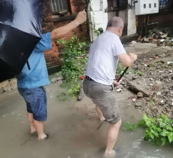 汛情就是命令,抢险就是责任。后勤党员干部全体人员紧急行动。一是立即召开防汛救灾抢险工作紧急会议,总经理助理蒯家江要求大家统一思想、提高站位、压实责任、听从指挥,加强隐患排查,勇于担当、不怕吃苦,第一时间发现险情报告并进行处置,确保辖区内住户的生命财产安全。二是成立后勤党支部防汛救灾抢险突击小组。主任书记分别任正副组长,并对防汛救灾抢险工作做了分工和工作安排。三是立即启动预案,根据汛情需要科学安排抢险救援任务、防汛物资准备。其次整合后勤维修班人员冲在一线对老旧房区域地面进行排涝排污,清除垃圾和废弃物。要求全体员工从18日起进入24小时紧急待命状态,保持手机畅通,随时准备投入到防汛救灾抢险的工作中去。四是加强公司辖区内老旧平房区域的巡查检视力度,包干划片作业,责任到人,后勤办负责人负责总体调度协调,与辖区政府、街道、社区沟通对接。五是加强对各处内涝地点进行排水,疏通管道,积极配合辖区街道做好防汛救灾抢险工作。同时对公司生活小区存在安全隐患的住户,进行引导疏散,截至18日上午10时,14、15栋平房20户住家已经全部安全疏散。