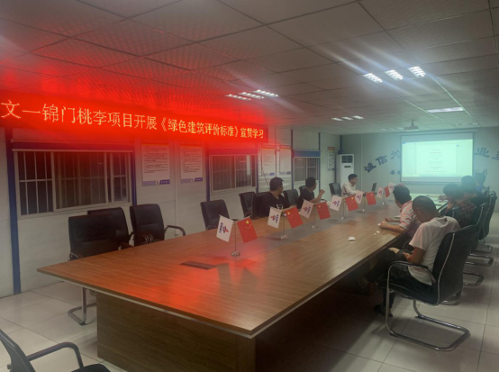 6月29日,五分公司文一锦门桃李项目利用晚上时间开展学习会,组织项目管理人员学习贯彻《绿色建筑评价标准》。