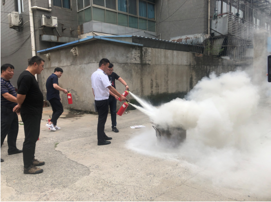 讲座结束后,教官组织全体人员进行消防应急演练,详细介绍了手提式干粉灭火器的基本原理和使用方法,并现场亲自示范操作。现场员工在教官的指导下圆满完成了火灾扑救的实战演练。