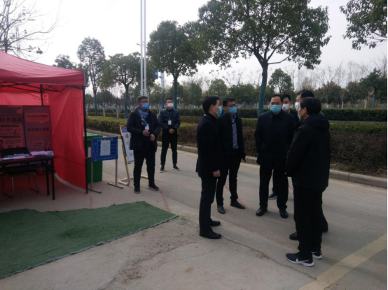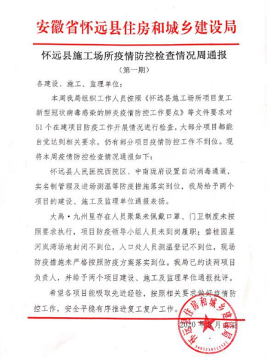 3月6日,怀远县县长张明廷、住建局局长崔华、质检站站长褚建新一行到安徽二建怀远中南珑府项目指导复工复产和疫情防控工作。