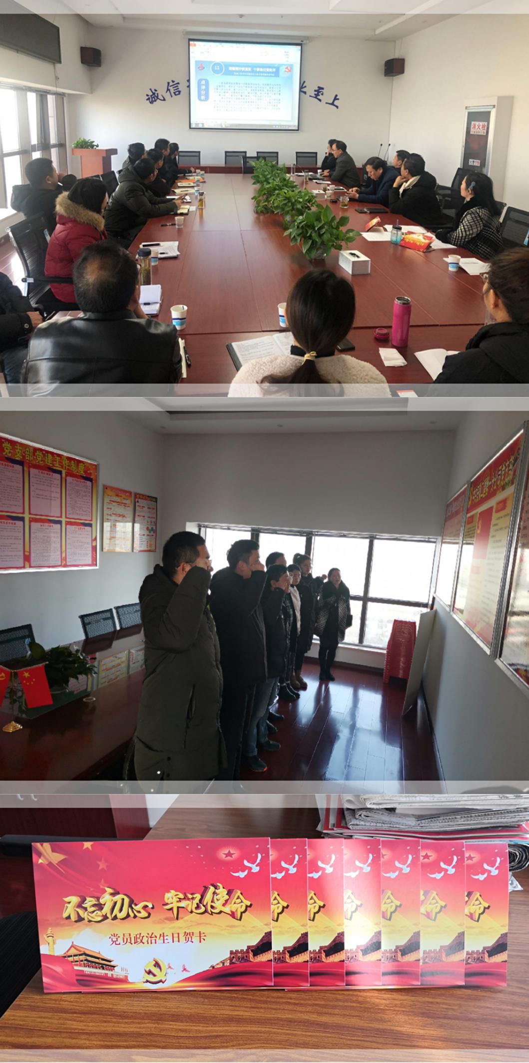 最后,为分公司四季度入党的党员集中过政治生日,以“不忘初心,牢记使命”为主题,就“当初入党为什么,如今在党做什么,今后为党留什么”进行交流发言,畅谈心得体会,党支部书记倪海霞带领过政治生日的党员重温入党誓词,庄严宣誓。