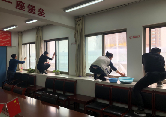 根据清扫范围分布,参加义务劳动人员分成3个小组,有的认真擦拭窗户,有的来回搬运垃圾,有的舞着拖把拖地,所有人员积极主动,相互配合,不怕脏、不怕累、不怕冷。虽然天气寒冷,但大家依然热情高涨,将整个清扫范围内打扫的一尘不染。