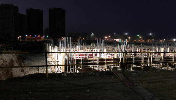 9月11日,许可证下来后,项目经理潘泽强立即组织生产资源有序进场,劳务队伍快速就位,开启了“白加黑”模式。项目成员几乎处于疯狂状态。早上天未大亮就已开始了一天的工作,晚上到住处已是月朗星稀。如果碰上浇筑混凝土或者夜间需要收材料时,那就是一整夜。“功夫不负有心人”。10月12日,项目全面达到业主要求的首开预售节点,受到了文一集团的高度认可和赞扬。