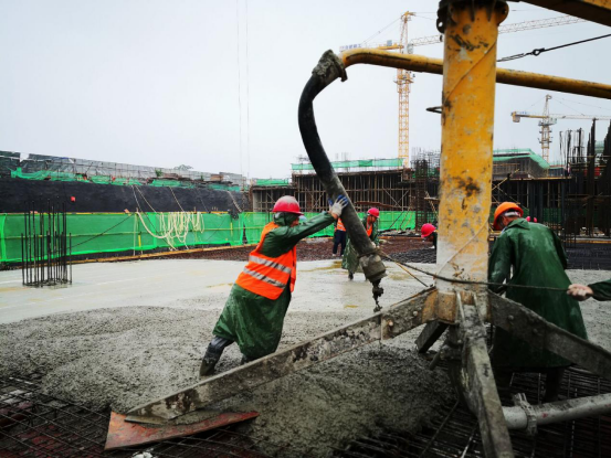 开工就是决战,起步就是冲刺!为了充分调动一线施工人员的工作积极性,保证工期节点不延误,确保各项工作顺利开展,该项目细化工期目标,加强施工现场管控,开工伊始便同劳务作业队签订了目标考核责任状。工程大干高潮迭起,在施工现场,伴着各种施工机械的轰鸣,工人们白天冒着烈日酷暑,晚上披星戴月,抢晴天战雨时,摸爬滚打,那边混凝土作业队正细致浇筑混凝土,这边钢筋工人们正认真绑扎着钢筋,远处测量人员则在精确定点和测量……连日来,吾悦广场项目部施工现场呈现出一派热火朝天的大干景象。项目主要管理人员始终坚守在生产第一线,有力保证了施工生产有序进行,用实际行动诠释“特别能吃苦,特别能战斗,特别能奉献”的安徽二建精神。“5月12日到5月25日完成产值2300万,创安徽二建公司月产值历史最高;截至目前,钢筋用量1700吨;混凝土用量11000方,平均每日混凝土浇筑量550方。”项目经理汪传松自豪地给我们介绍道。谈及自己的家庭,“很久没有回家了,”汪经理无奈地说,“前几天,娃娃胳膊扭伤,昨天好了,视频的时候孩子才告诉我,我爱人怕我担心,影响工作,一直没说,自己陪着孩子奔波医院,作为项目负责人,我问心无愧,作为丈夫,我对家庭亏欠很多,家人对我支持很大。”正身率下,以身作则。有这样的领头灵魂人物,怎会打造不出一支想干事、会干事、干成事的二建铁骑!