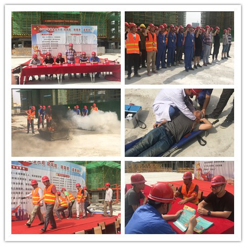 6月5日,临泉汇鑫悦澜湾项目组织开展了现场应急救援演练及消防演练活动。炎炎烈日下,由分公司相关领导主持,各科室负责人,项目管理人员及施工人员积极参与,通过实际演练,使现场人员学会了正确使用灭火器等消防器材,并提高了现场管理人员及施工人员的应急处理能力。