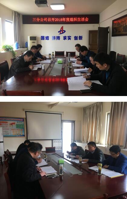 3月28下午三分公司在五楼会议室召开2018年度组织生活会公司党委书记、纪委书记仇多维、公司总工程师邱立龙,党委工作部主任施用宏到会指导,会议由支部书记陈习武主持,分公司领导班子全员参会。