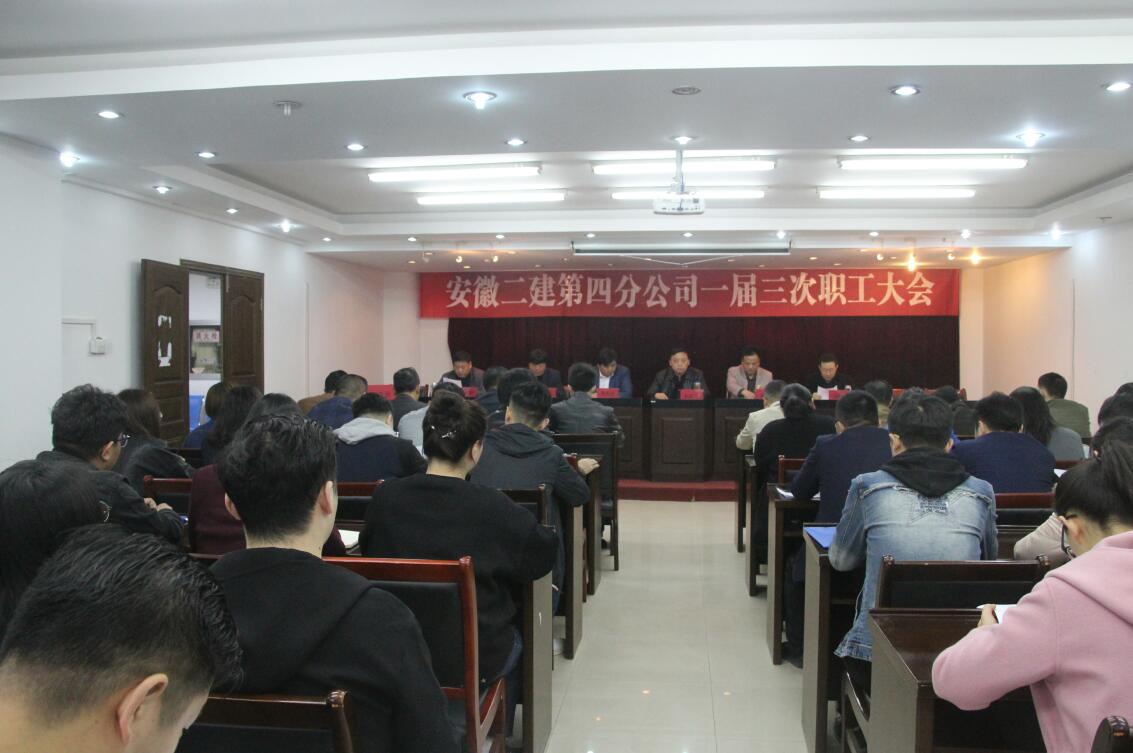 3月22日上午,安徽二建第四分公司顺利召开了一届三次职工大会,公司党委副书记、纪委书记仇多维,总经理助理、工会副主席蒯家江,党委工作部主任施用宏到会指导,分公司52名职工参会,支部书记董建民主持大会。