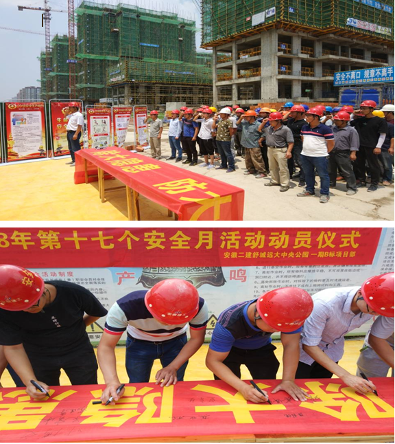 6月1日,舒城远大中央公园一期B标段项目部响应公司号召,组织开展2018年第十七个安全生产月活动,项目全体管理人员及劳务班组成员参加。