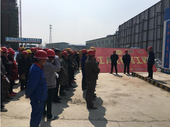 在工地安全讲评台前,各班组整齐列队,认真听讲,张部长结合年前安徽省发生的几次重大安全事故的惨痛案列,尤其是太和县1.23人货电梯事故给予的深刻启发,要求所有参建班组成员,严格遵守安全操作管理制度,提高安全意识,服从项目部管理,严肃奖罚制度,对于仍不按照安全规范操作、不遵守安全施工纪律的人员,坚决给予清退处理,敢于制止违章操作,避免安全事故发生的人员,也将给予一定的奖励。全体参建人员应本着为自己负责,为他人负责,为家庭负责的理念认真落实安全施工相关条例。