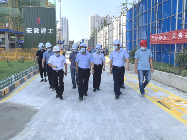 覃卫国一行察看了项目施工现场,认真听取了项目经理徐良对项目工程概况、现场安全文明施工及疫情防控工作的详细汇报。他对现场安全管控及疫情防控工作给予了充分肯定,并提出要进一步强化落实企业主体责任和部门监管责任,加强信息技术推广应用与安全监管创新,有效提升监管效能,筑牢安全生产和疫情防控坚强防线。