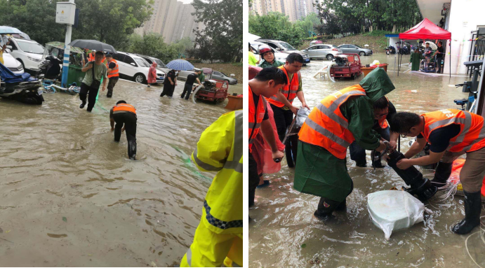 7月18日,合肥遭受77年一遇单日最大降雨。蓝天公寓和大兴镇兴泰苑出现内涝,情况紧急,人民群众生命财产安全遭受威胁,汛情就是战斗令,二分公司接到指令,马上组建30余人的抗洪突击队,紧急调运大功率水泵2台,配电箱2个,80米电线电缆,300米水管等防汛物资,20分钟极速赶到抗洪前线。现场有的架设水泵、有的铺设电缆、有的配合抽水排涝,分工明确、争分夺秒。经过数小时的紧急救援,至凌晨,灾情得到有效控制。奋战了8个小时的志愿者们才撤出前线。